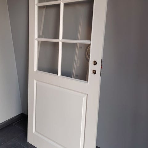 Olleet käytössä vain 2kk, kun odoteltiin uusia ovia. Harmaassa ovessa pienet naulan reiät, kun ehdittiin jo kiinnittää ovikyltti.