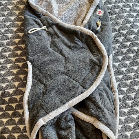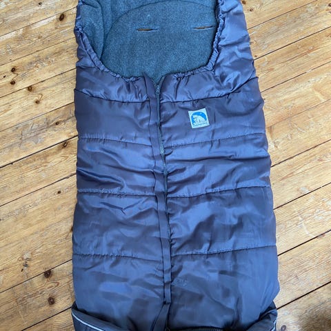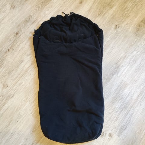 Lämmin ja hyväkuntoinen fleecepussi rattaisiin. Vetoketjut molemmilla sivuilla. Reiät viisipistevöille.