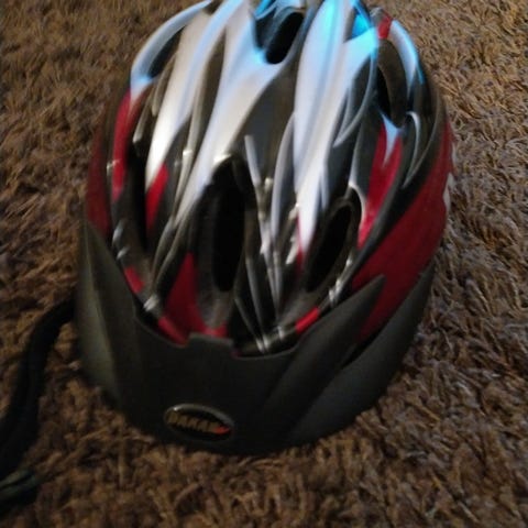 Hyväkuntoinen pyöräilykypärä. Pinnassa normaalia käytönjälkeä. Aiemmin käytössä yläkouluikäisellä tytöllä. Koko M, (52-59cm)