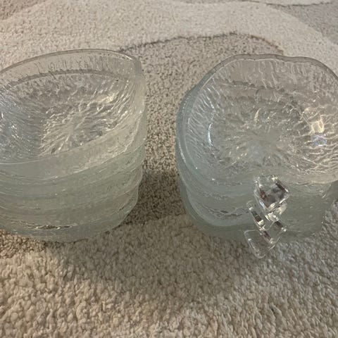 6 kpl pieniä kulhoja ,n.12x14x4 cm ja 1 iso kulho , n.21x23x7.Ehjiä.Mieluiten nouto.