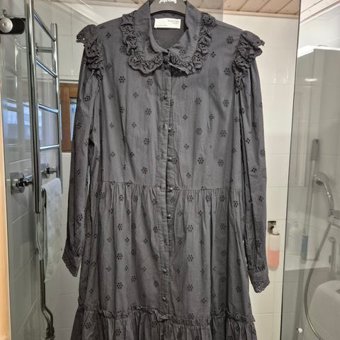 Selected Femme Matilda mekko, väri luonnonvalkoinen/beige, koko XL. Mekko on valmistettu pehmeästä materiaalista ja siinä on koristeelliset hihat, jotka lisäävät juhlavuutta. Laskeutuu kauniisti. Mekon kokonaispituus kaula-aukosta helmaan 70 cm.