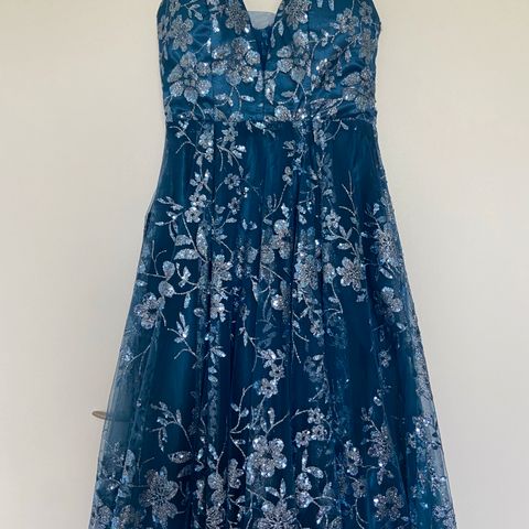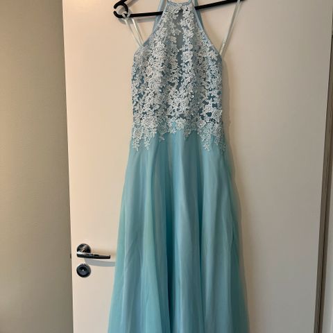 Vanhojentanssimekko, koko XXS. Mekko ollut 162cm nuorella, helman pituus n.103cm.