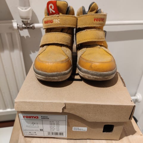 Reima Patter välikausikengät koossa 23. Väri pinkki, jonkin verran tummentumaa, ja kulumaa. Pysyvät tarrat.