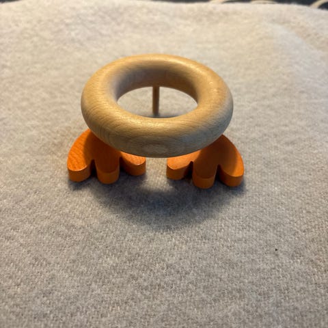 -koristeessa kaksi nallea roikkuu sinisen kellon narussa