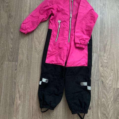 Reima lasten haalari vaaleanpunaisella kuviolla, koko 128, suunniteltu tytöille. Haalari on yhdistelmä vedenpitävää materiaalia yläosassa ja joustavaa mustaa kangasta alaosassa. Sisäpuolella on verkkomateriaali, joka parantaa hengittävyyttä. Hihan ja lahkeiden resorit varmistavat istuvuuden ja suojaavat tuulelta. Soveltuu ulkoiluun ja leikkiin.