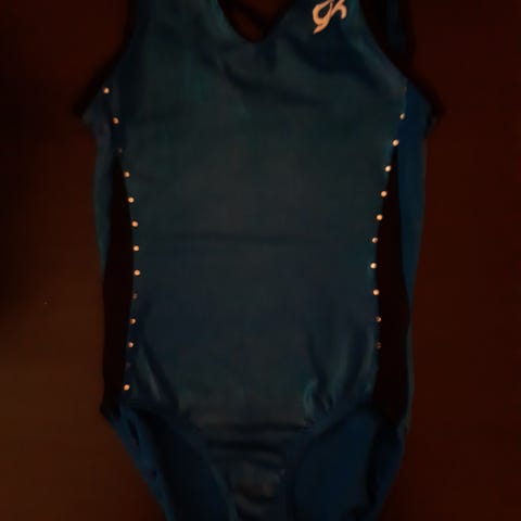 GK lasten voimistelupuku, koko AS, noin 134-140 cm voimistelijalle. Väri sininen, valmistettu kiiltävästä materiaalista. Soveltuu erilaisiin voimistelulajeihin.