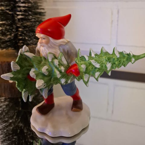 Apilanlehti talli ja tonttu portailla/ joulu / vintage