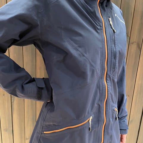 Peak Performancen Gravity mallinen 3L kuoritakki koko S. Kunto hyvä, muutama käytönjälki löytyy. Yksi pieni nirhauma taskun kohdalla paikattu vaatelaastarilla.