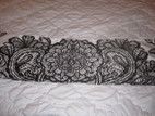 Verho on just ommeltu. Verhon leveys on 138cm ja korkeus on 58cm. Yläosassa on leveä tankokuja.