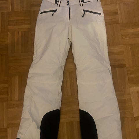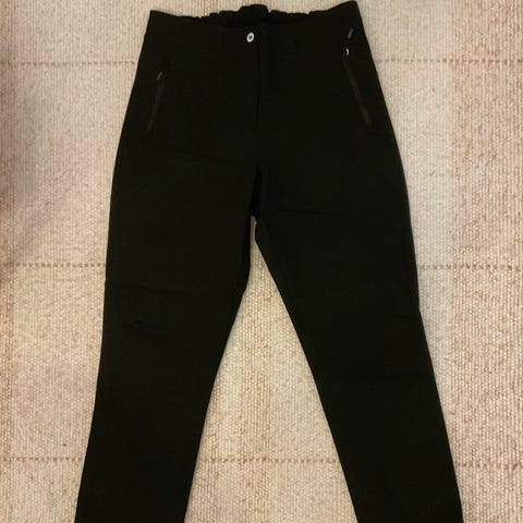 Vetoketjutaskut. Vyötärössä on kuminauha. Takaosassa ommeltu reikä, muuten hyväkuntoiset.