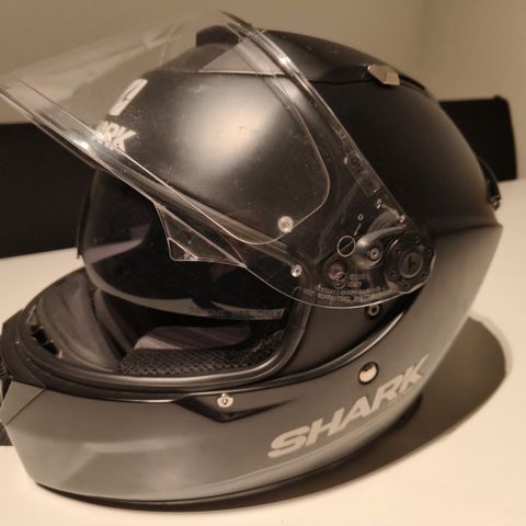 Kypärässä on asennetuna myös Sharkin Sharktooth kypäräpuhelin (bluetooth). Ollut useamman vuoden varastoituna, joten kypäräpuhelimen akun kestosta ei tietoa. Väri oranssi ja musta. Sisältää myös kirkkaan visiirin ja suojapussin, sekä käyttämättömän Pinlock kalvon.