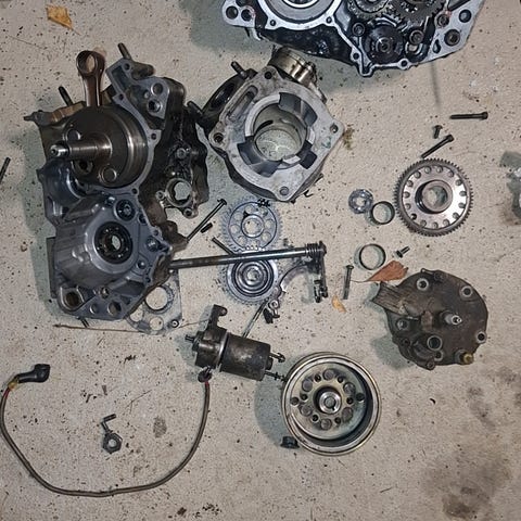 Myydään kuvien mukaiset Yamaha DT 125 varaosat. Myydään mielellään kaikki kerralla. Tarjoa hintaa, halvalla menee.