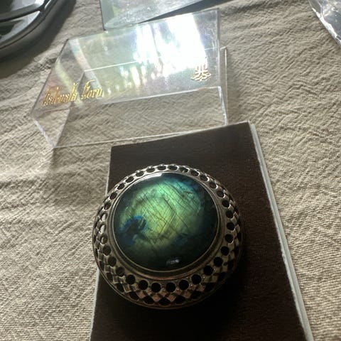 Toivo Salmen upea spektroliitti riipus vuodelta 1980. 830 hopeaa. Koko 5 x 2.7cm.