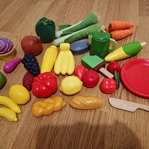 Kuvan mukainen kokoelma Retro muovi leikkiruokia.