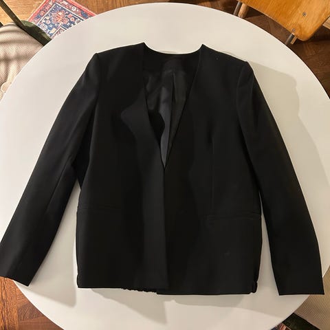 Hyväkuntoinen ja laadukas Filippa K jakkupuku (bleiseri + suorat siistit housut). Materiaali: villa 98% ja elastaani 2%.
