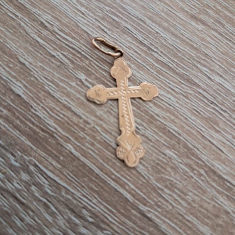 Pekka Aulinin valkokultainen risti. Leima PIA 585. Koko 2.5 x 1.2cm.