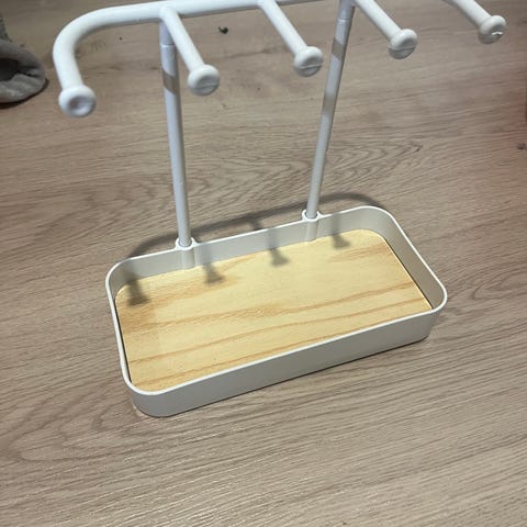 Myydään metallinen koruteline. Korkeus 46 cm ja leveys 25,5 cm. Pohjassa huopa, niin ei naarmuta pöytää.