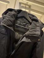 Kangas erinomaisessa kunnossa, ei naarmuja tai reikiä. Ainoastaan hihojen heijastinnauhojen pinnassa pientä kulumaa. Hyvä musta väri, kuvissa valaistus vääristää.