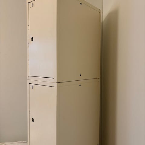 Myydään Ikean peltikaappi kahdella ovella. Ovet toimii hyvin, eivät ole vääntyneet tms. Sisällä on yksi hylly. Olen säilyttänyt tässä kaapissa valokuvakansioita sisätiloissa. Myyn isomman kaapin alta pois.