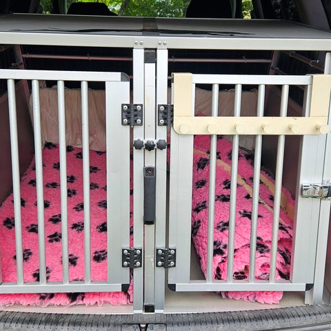 Lukittava, kahdella ovella, sopii ainakin Astra G/F. Mukaan saa Astra G koiraverkon. Veräjän leveys x korkeus x syvyys: 108 (100) x 78 x 92 (62,5).