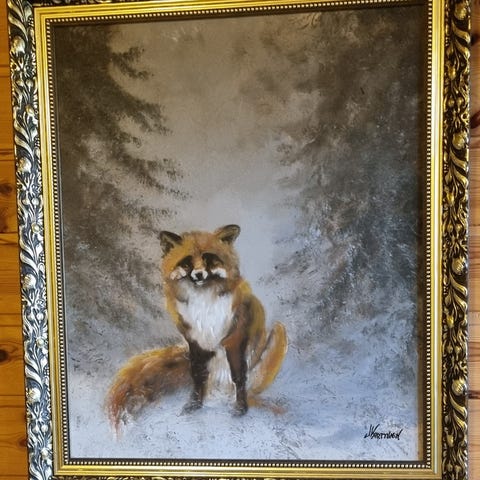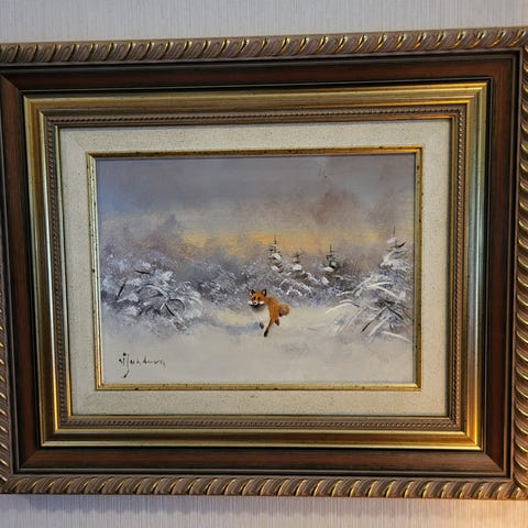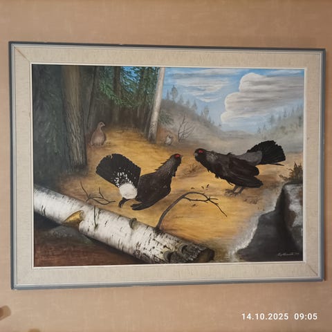 V. Junturan maalaama kettuaiheinen taulu. Koko kehyksineen 40 x 48 cm.