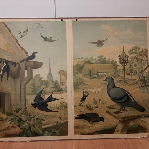 Wanha saksalainen koulun opetustaulu on kooltaan 62 x 79 cm kuvan mukaisessa kunnossa. Reunoissa rikkoa.