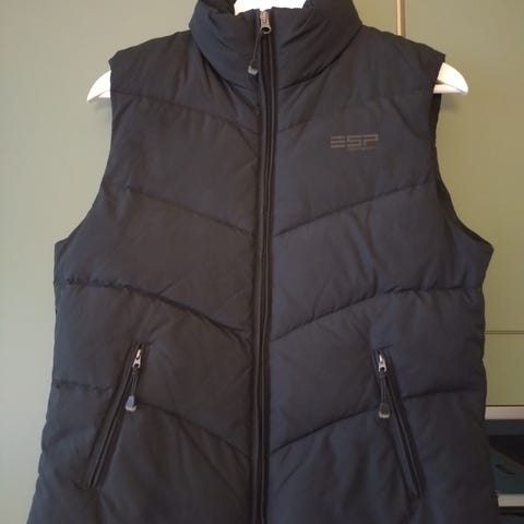ESPRIT musta toppaliivi, koko S. Irroitettava huppu ja säädettävä vyö. Vetoketjulliset taskut.