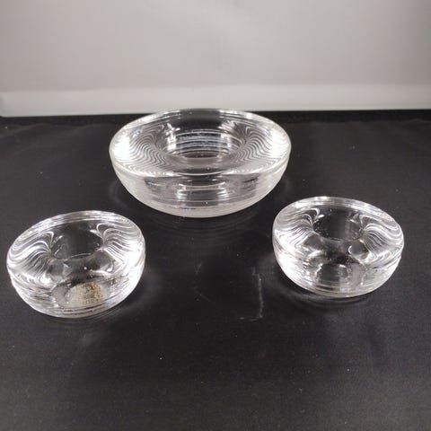 Kynttilänjalkojen halkaisija on 6 cm ja korkeus 3 cm. Kaikki ovat ehjiä ja hyväkuntoisia.