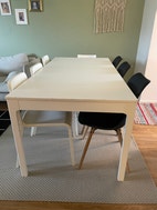 Kuuden hengen ruokapöytä. Jatkettavissa jatkopalalla 8hnk. Tuolit jää itselle.