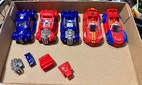 Kaikissa autoissa uudet virtaharjat, hyvät/pehmeät takarenkaat. Heti valmiita radalle tai hyllyyn.