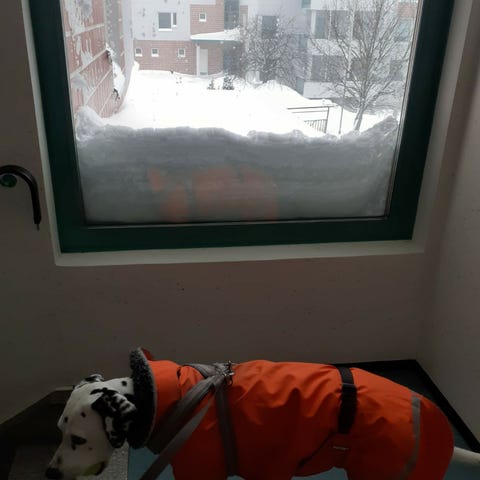 Uusi veden- ja tuulenpitävä takki, laput vielä kiinni. Ei sopinut meidän koiralle( berninpaimenkoira).