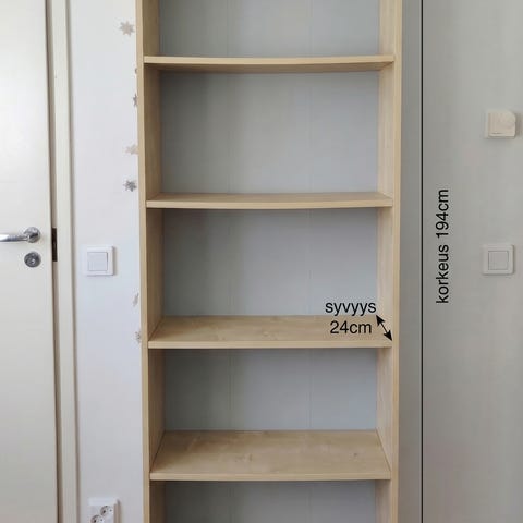 Kolmen hyllyn taso/kirjahylly. 117cm lev./107cm kork./35,5cm syv. Vain nouto.
