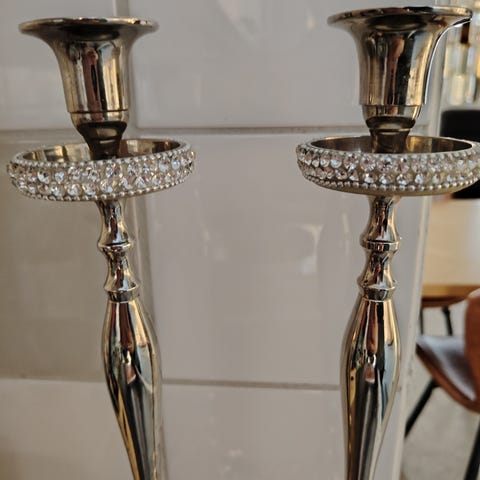 Kolmihaarainen hopeoitu kolmihaarainen kynttilän jalka korkeus 37cm.