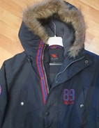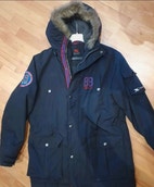 Muutamasti käytetty, mutta pieneksi todettu miesten lämmin parkamallinen takki. Takissa vetoketju ja nappilista, sisällä molemmilla puolilla sisäpuolilla sisätaskut, ulkopuolella nepparikiinnikkeiset taskut, hihoissa resori ja päällä tarra/ nepparikiristys. Vyötröllä sisäpuolella kiristysnauha. Hupun karvan saa irti halutessaan. Itse huppu on kiinteä.