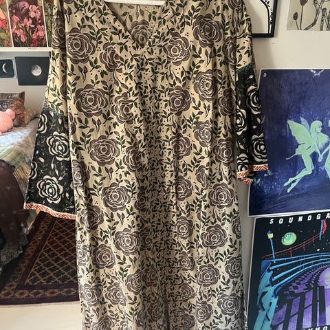 Kuvanmukainen mukavantuntuinen, pehmeä 100% ekopuuvillaa oleva tunika, jossa nauhat takana ja sivuilla kiristystä varten. kainalo-kainalo 52, olka-helma 90 cm.
