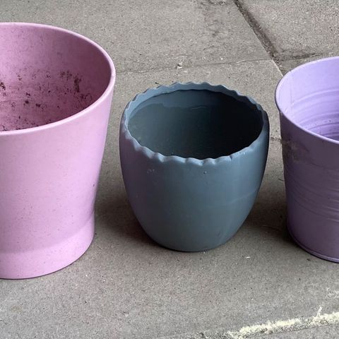 Kaksi valkoista roikkuvaa keraamista kukkaruukkua. Ruukkujen aukon halkaisija 15cm ja korkeus 29,5cm. Molemmat yhteensä 5€.