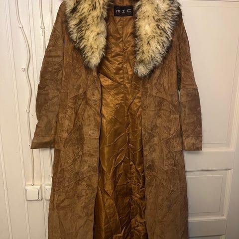 Ruskea naisten talvitakki, koko L, sorsa-aiheinen vuori. Takki on suunniteltu kylmiin olosuhteisiin ja sopii naisten käyttöön. Materiaalina on käytetty pehmeää ja lämpöä eristävää kangasta.