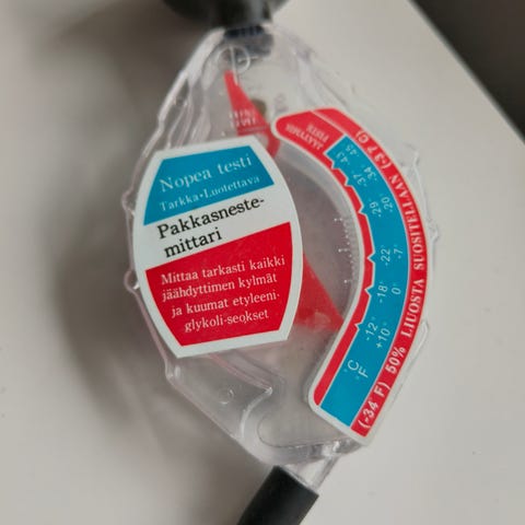Hakusanoja: Pakkasneste, pakkas, neste, testeri, mittari, pakkas-neste, jäähdytin, jäähdytinneste, jäähdytin-neste, jäähdytinnestemittari, jäähdytin-nestemittari.