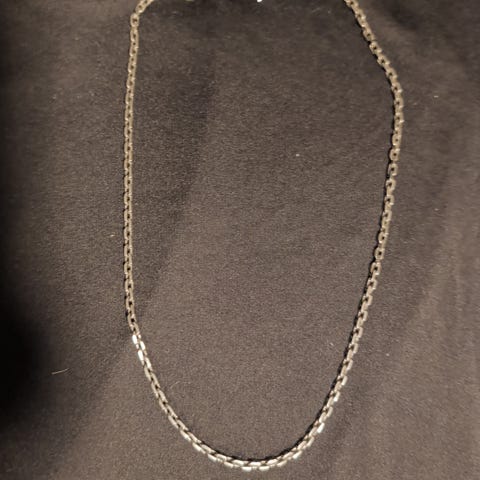 Ketjun pituus 42 cm ,925 hopeaa ja riipus 40x15 mm, leimat 925 ja OJT??