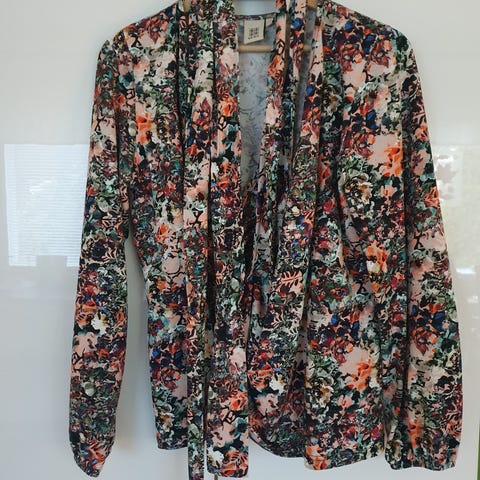 Kaiko wrap blouse musta, koko M. Pusero on valmistettu kevyestä materiaalista ja siinä on 3/4-hihat.