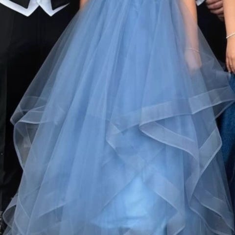 Myydään uusi käyttämätön vanhojentanssimekko. Merkki on Morilee. Väri kultainen paljettiyläosa ja turkoosi alaosa.