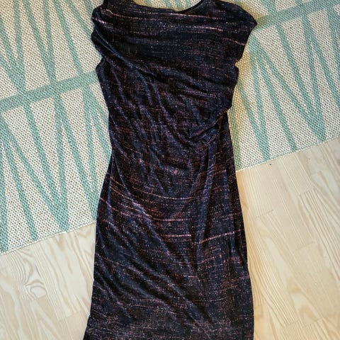 Kauniin punainen mekko "hopeanvärisillä" somistein.