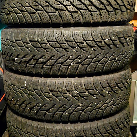 Sarjan neljäs ajettu rikki niin, ettei paikkaaminen onnistu, joten vaihdoin samantien nastoihin.