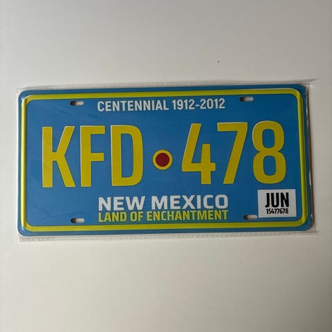 New Mexico Centennial Rekisterikilpi, sisustustaulu 31 cm x 15,5 cm