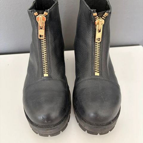 Vagabond mustat mokkanahkaiset nilkkurit pienellä korolla, koko 36. Vetoketju helpottaa kengän jalkaan laittamista.