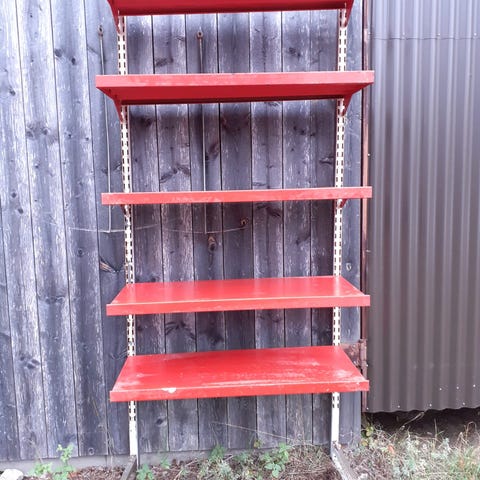 Korkeus 160, hyllyt 90×30 (16 kpl), 90×40, (2kpl) ja 90×50 (1kpl).