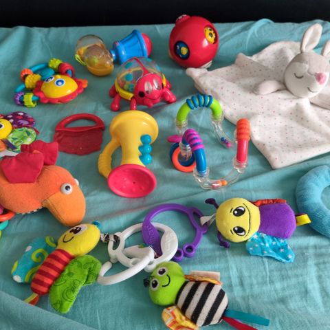 Lasten leluja sisältävä kokoelma, johon kuuluu erilaisia palapelejä, puisia leluja, muovisia ruokailuvälineitä ja muita leikkiesineitä. Lelut ovat eri värejä ja materiaaleja, sopivat lasten motoristen taitojen kehittämiseen ja leikkiin. Kokoelma soveltuu eri-ikäisille lapsille. Jotkut osat voi puuttua. Postitus tai nouto Vantaalta