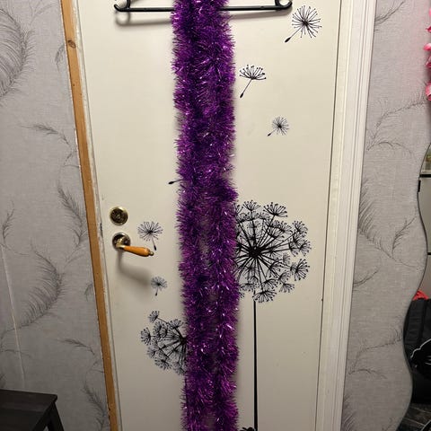 2x violettia joulukuusen koristenauhaa. Kunnolla kimaltaa. Ovat ok kuntoiset, joistain kohdista on tuo päällysosa irronnut mutta ajaa asiansa kuten kuvista näkee. On kahdessa osassa.