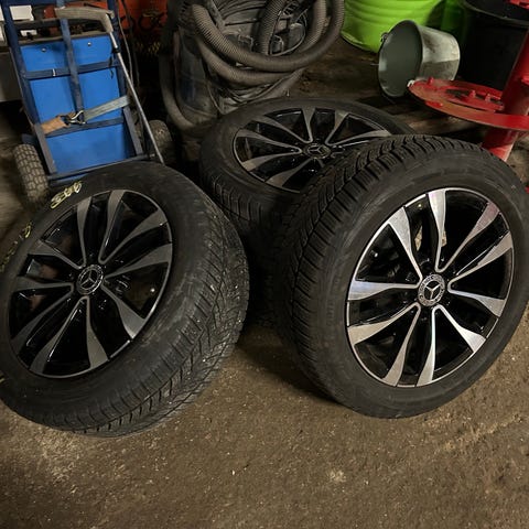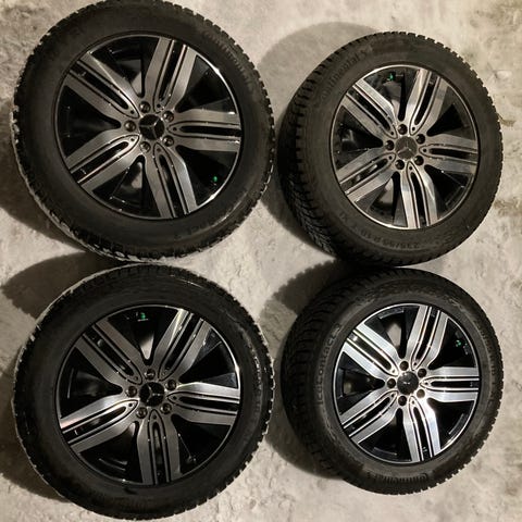 Mercedeksen alkuperäinen aluvannesarja Continentalin VikingContact 7 -renkailla EQB:n alta. Vanteet erittäin hyväkuntoiset ja renkaissa pintaa minimissään 6 mm per rengas. Vanteissa rengaspaine/TPMS-anturit ja ne ovat tasapainotettu eli setin voi laittaa suoraan auton alle.