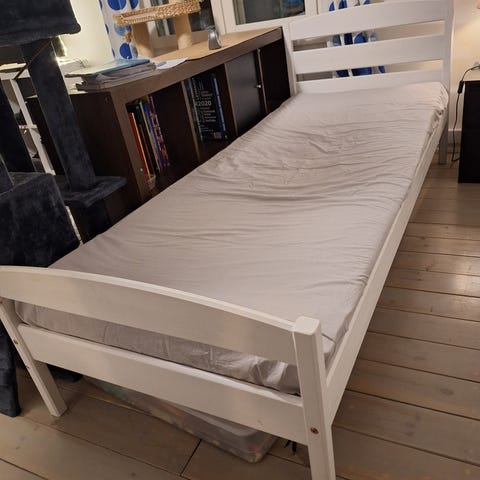 80cm patja ja runko. Patjassa voi olla sivussa tahroja, muutossa tulleita muuten erittäin hyvä.Valo heijastaa keltaista patjaan, mutta siinä ei ole mitään, vaan ihan kunnossa oleva.